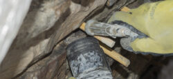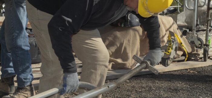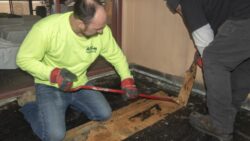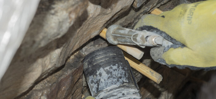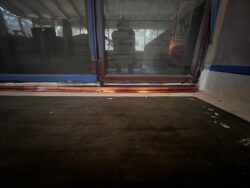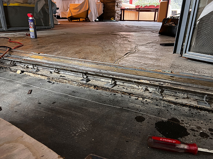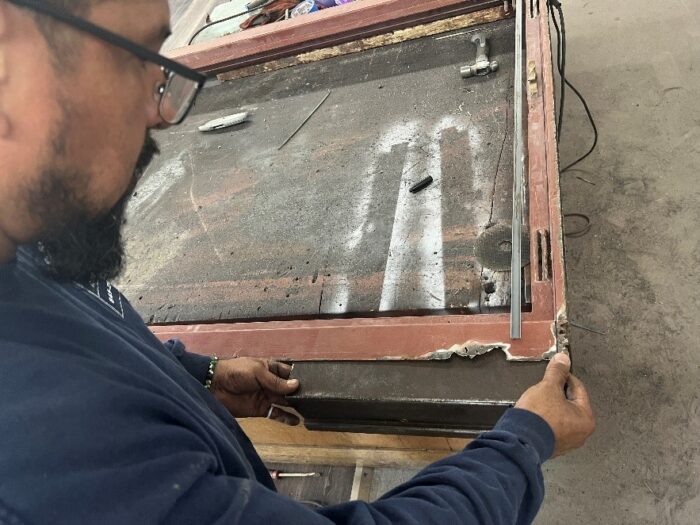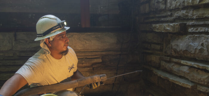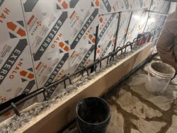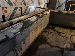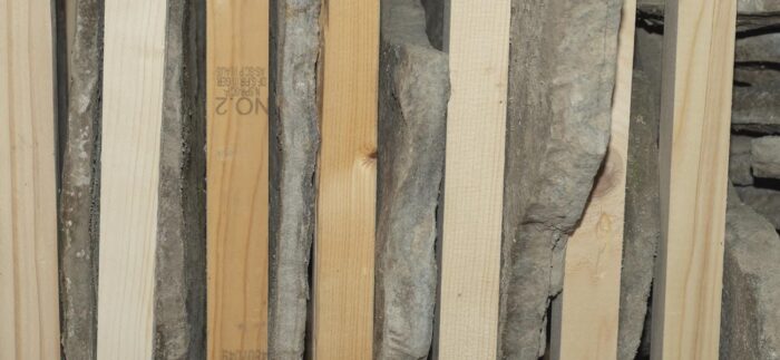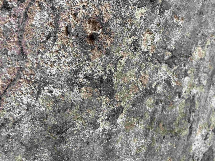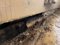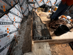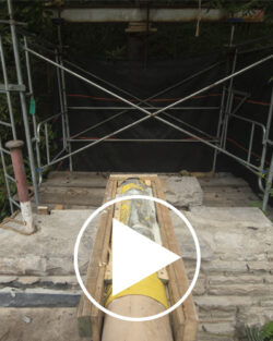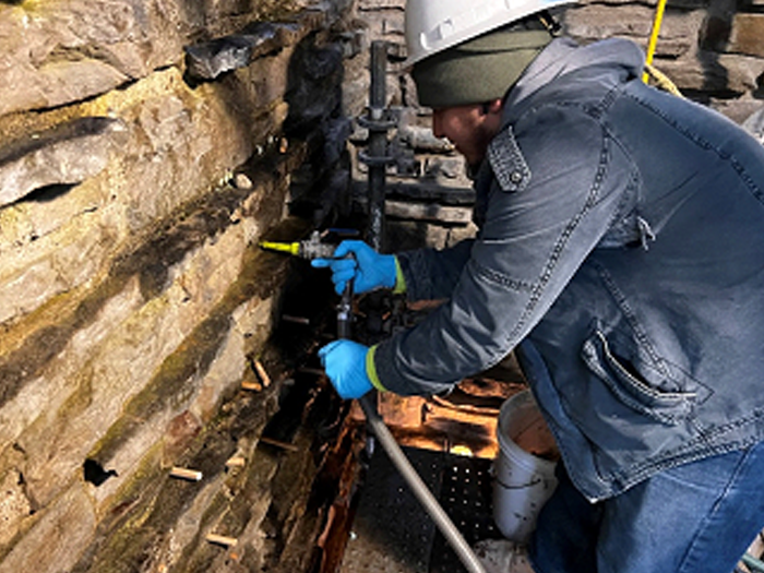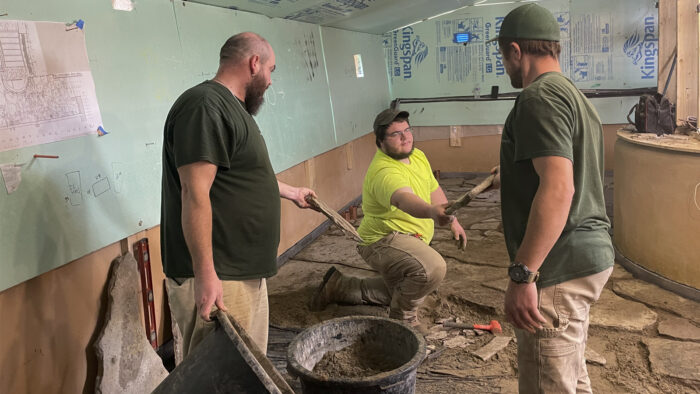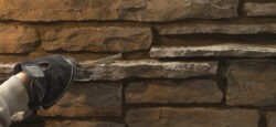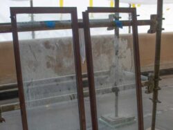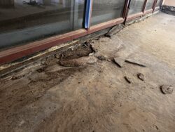 Although the majority of the Canopied Walkway is in good condition, the stone pier that supports the lower part of the canopy required significant repairs. Constructed of reinforced concrete, this element of Wright’s design is only four inches thick, and cracks have caused the steel reinforcing bars to become exposed to the elements. This exposure has allowed water to wick into the concrete, leading to the expansion and corrosion of the steel, which, when untreated, could potentially cause structural damage.
