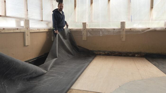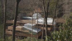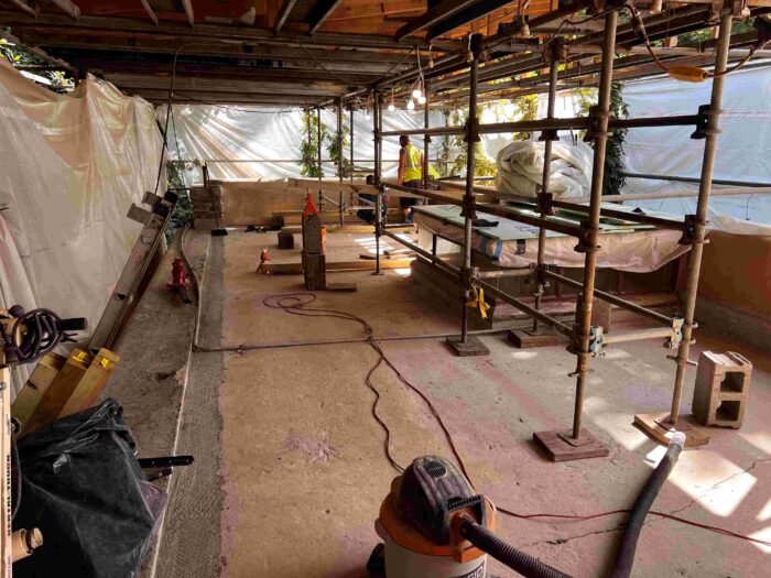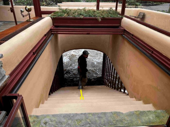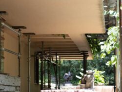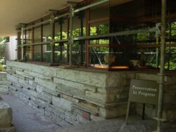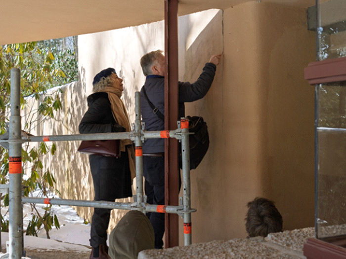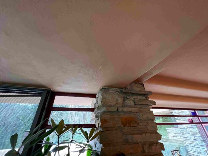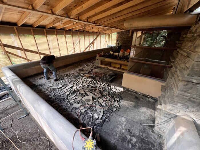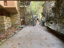 During the tour off-season, one area of focus for Fallingwater’s preservation team has been the reinforcement of the Canopied Walkway. This Wright-designed walkway, which connects the Main House to the Guest House, has also faced deterioration of its concrete over time.