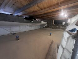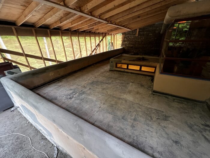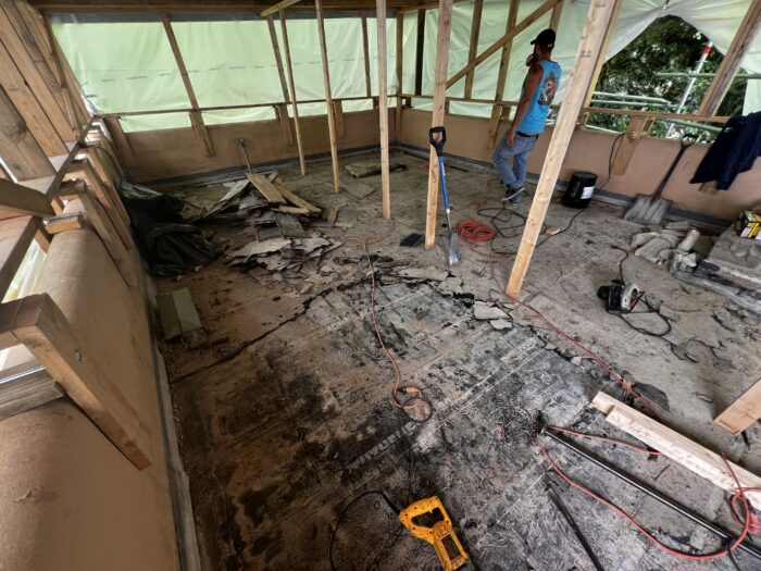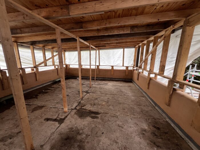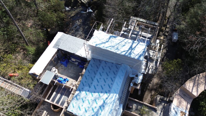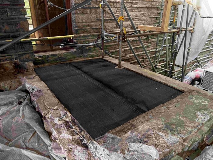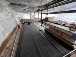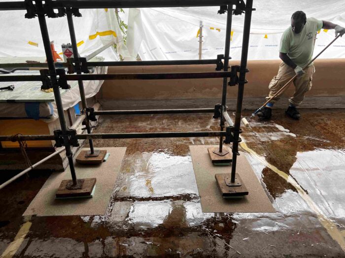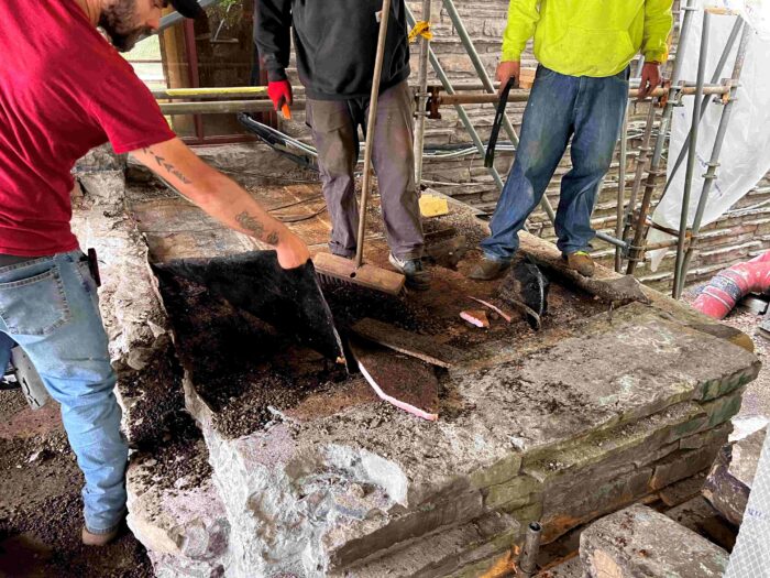 In addition to the work on the Canopied Walkway, the preservation team continued its significant progress on waterproofing membrane replacement atop the Servant’s Quarters. This process followed a similar approach to our recent roofing project on the lower guest house roof, which has been detailed in previous blog updates (see June and July 2024 blog entries below). This work at the Servant’s Quarters concluded last week.