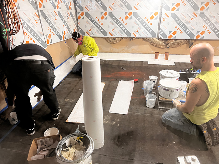 To mitigate this, our preservation team implemented a fiber-reinforced cement matrix (FRCM) as an intervention, strengthening the concrete through an application of a fabric-like fiber polymer mesh. The process began with removing the deteriorated material and hand applying new concrete onto which the FRCM mesh was applied to further reinforce the canopy structure.