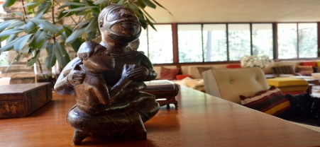 The Kaufmanns drew from their own interests in fine and decorative arts at Fallingwater, placing sculpture, paintings, textiles and furniture throughout the house. More