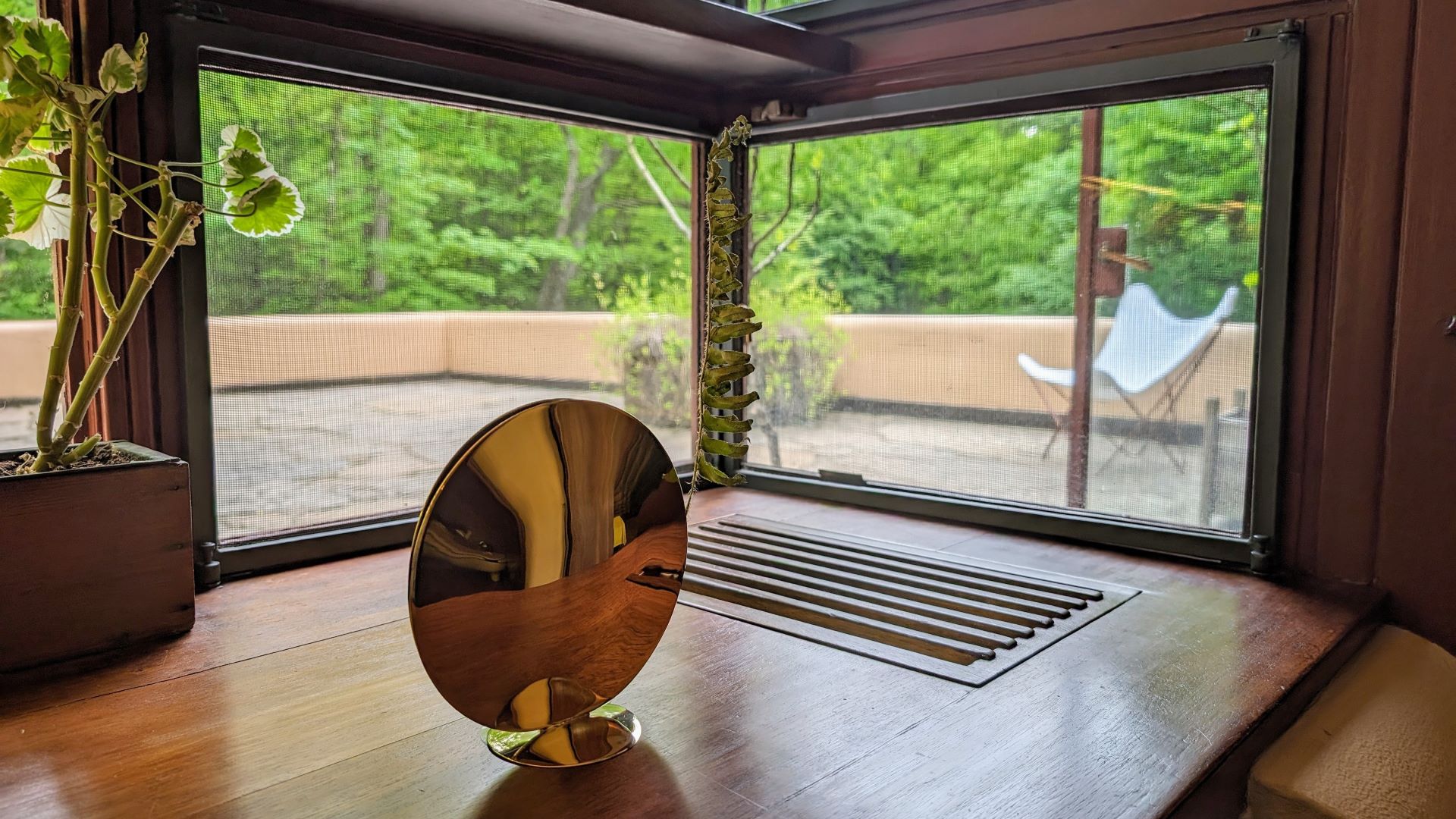Brass vase (2024) designed by Carl Auböck V (b. 1987), on display in Lilane’s bathroom.
