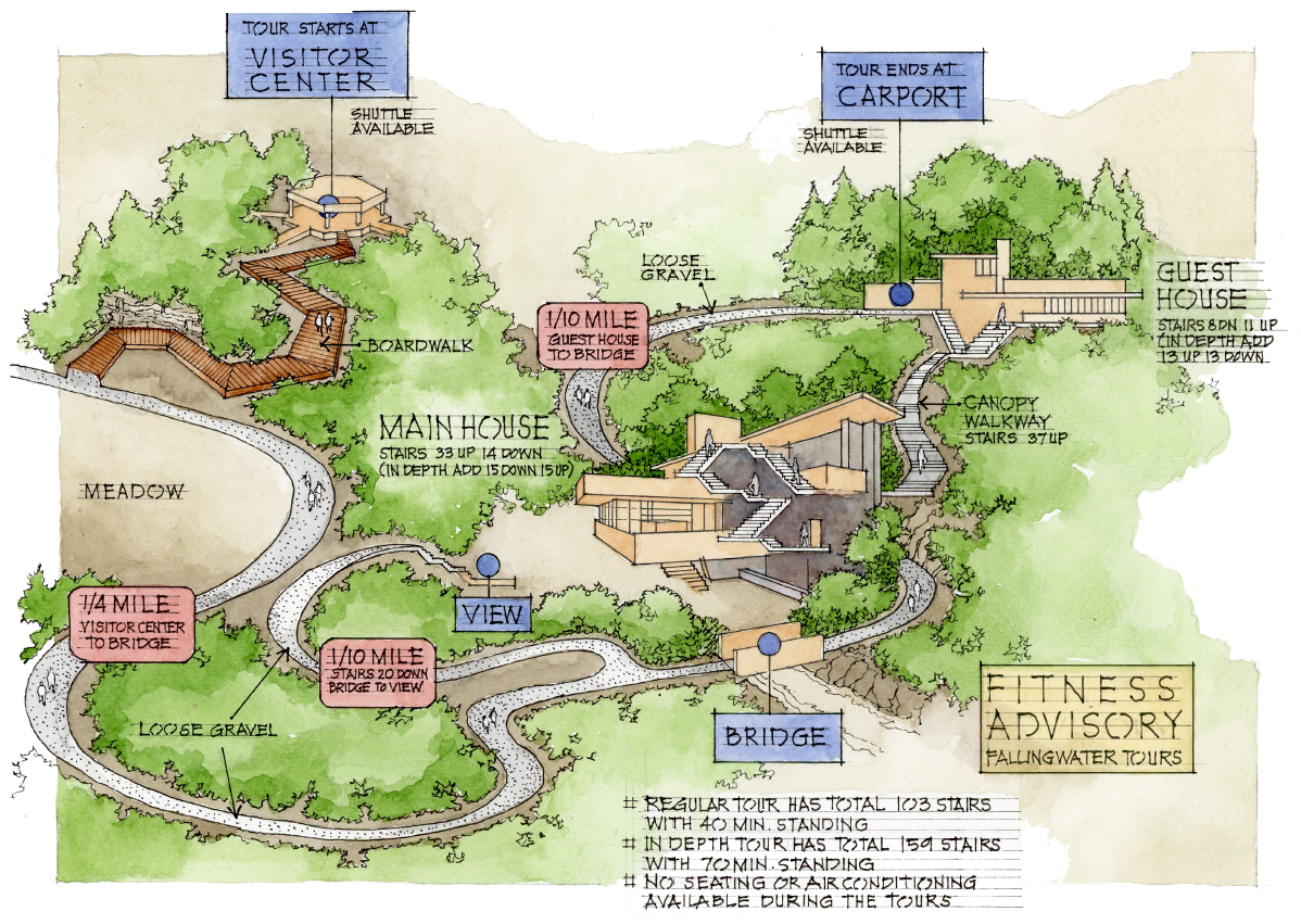 Drawing of Fallingwater and the grounds to show physical mobility restrictions